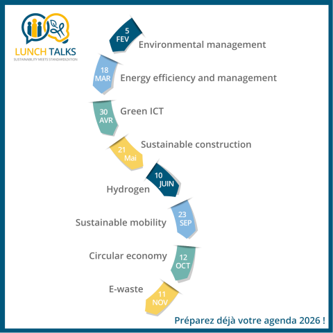 Dès février 2026, participez aux webinaires de la nouvelle série intitulée “Lunch Talks : Sustainability Meets Standardization”.