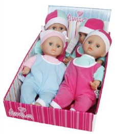 Les poupées bébé en plastique « Schlaf-Baby mit Mütze » de la marque AMIA, référence 500 06 042, code EAN 4022498508086 comportent des cils qui se détachent par soi-même de leurs paupières et constituent ainsi des petites pièces qui peuvent créer un risque d’étouffement pour les jeunes enfants lorsqu’ils sont ingérés.