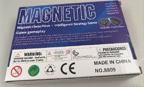 Le jeu d’échecs magnétique détaillé ci-dessous est retiré du marché et un rappel auprès du consommateur est organisé car le produit n’est pas conforme à la législation sur la sécurité des jouets. Le jouet est composé de petits aimants à fort flux magnétique. Les composants s'insèrent parfaitement dans le cylindre à petites pièces. Il existe un risque d'étouffement en cas d'ingestion d'un de ces composants.