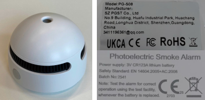 Le détecteur de fumée détaillé ci-dessous est retiré du marché et un rappel auprès du consommateur est organisé, car le produit n’est pas conforme à la législation sur les produits de construction. L’absence sur le produit de plusieurs informations essentielles liées au processus de certification, l’indication de fausses coordonnées et l’absence d’une personne de contact établie dans l’Union européenne remettent en question le fonctionnement adéquat et conforme du produit. Un fonctionnement inadéquat met en danger la vie des consommateurs.